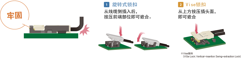 垂直嵌合不影响其他元器件,有效节省空间,提高基板设计自由度。采用从上向下的嵌合方式,易于确认嵌合口,从而更好地确定插